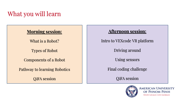 In the afternoon session, we will be able to experience how to program a robot through hands-on coding session using an online robotics platform called VEXCode VR. After learning, participants will gain the skills to continue to use the platform by themselves.
